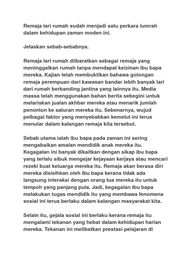 Punca Remaja Lari Dari Rumah Pdf